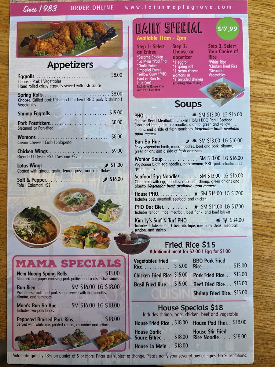 Welcome to Lotus Maple Grove, a hidden culinary gem nestled in the heart of Maple Grove, Minnesota. Located at 13704 83rd Way N, this vibrant establishment transports diners on a delightful journey through authentic Vietnamese cuisine. As a food reviewer, I find myself captivated by the sensational flavors and warm ambiance that encompass this eatery.
